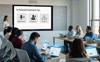 A two day masterclass that empowers professionals to deliver powerful presentations using AI. Participants learn to structure messages, design visuals, and speak with confidence through AI-driven tools, hands-on coaching, and real performance practice.